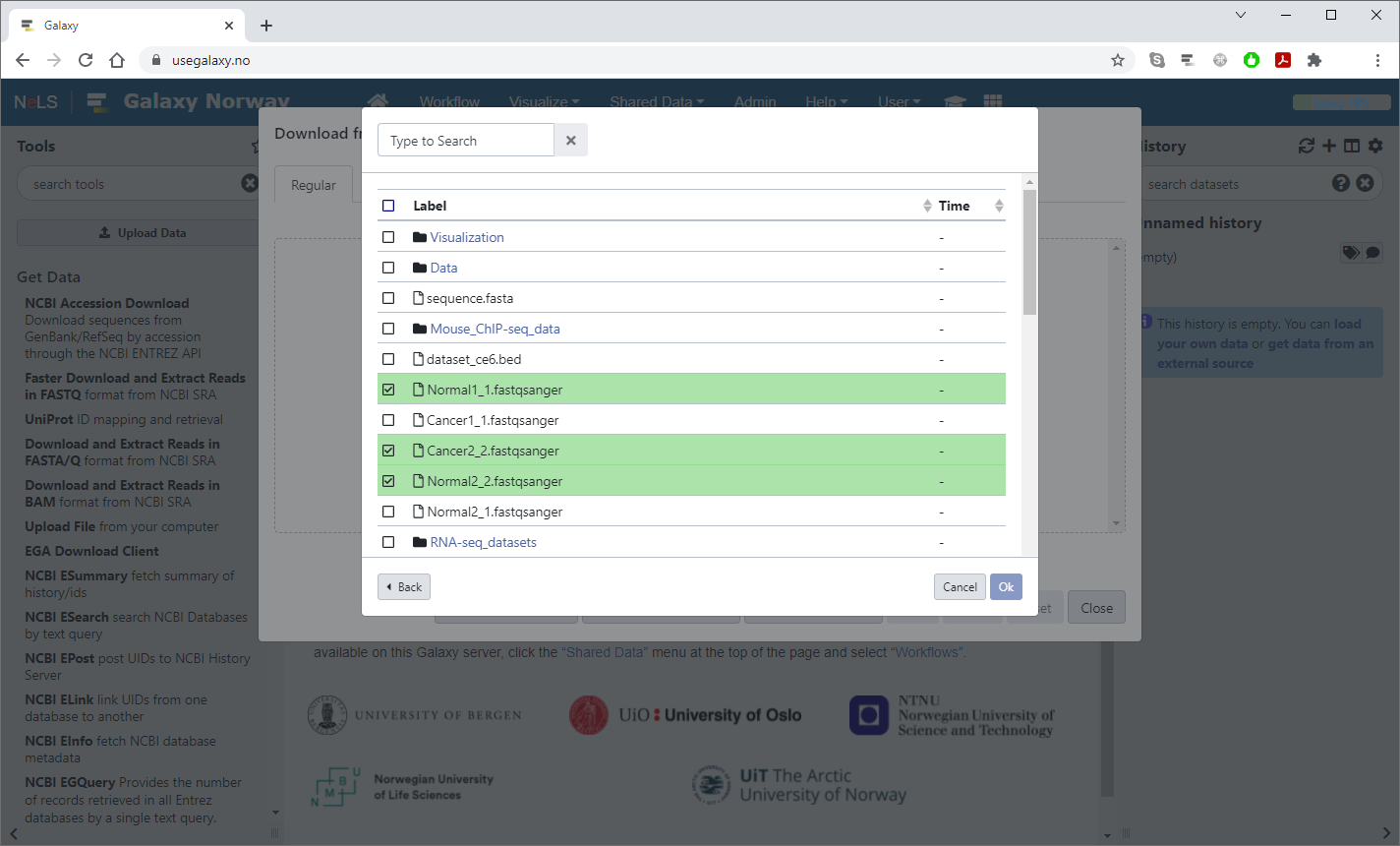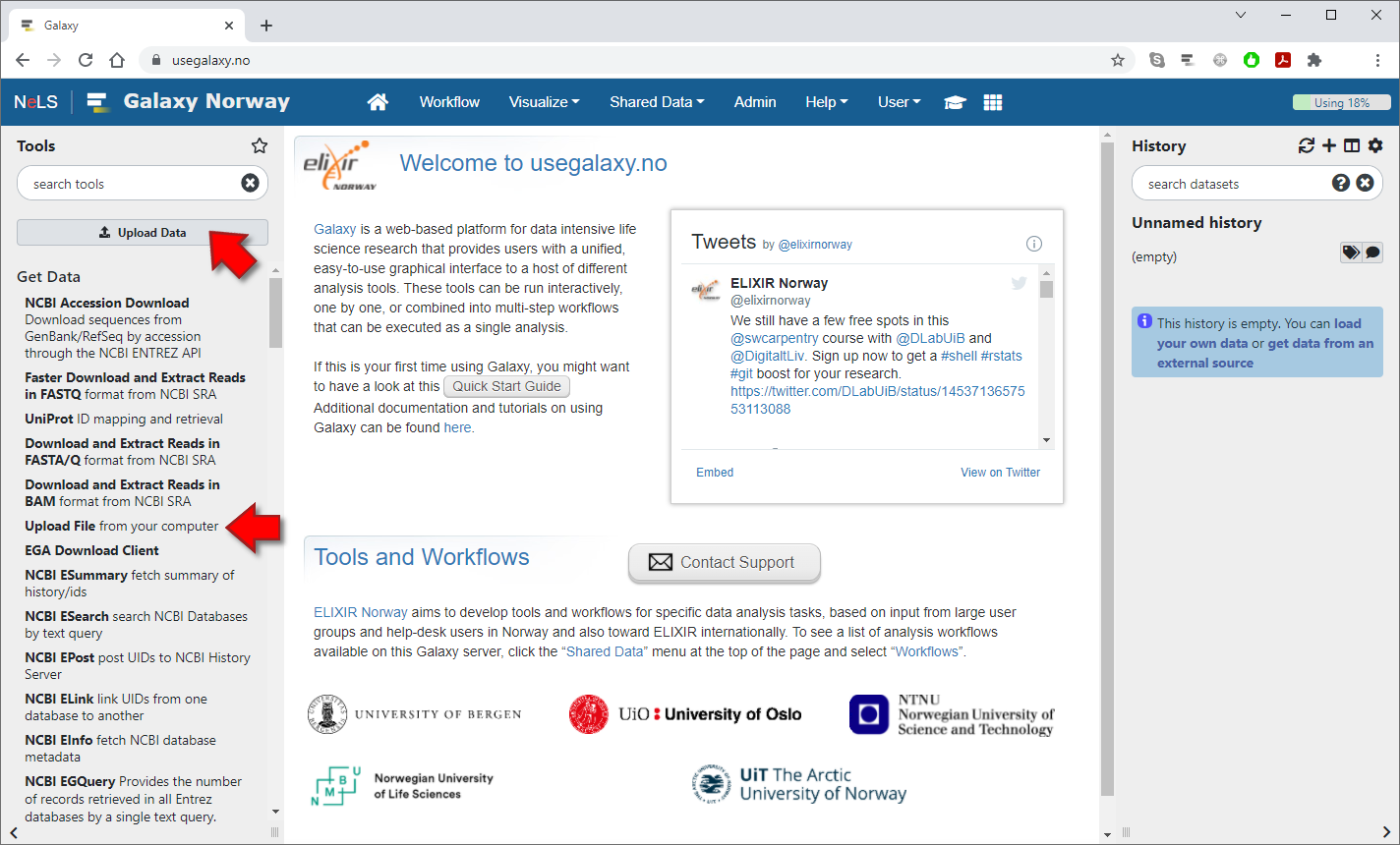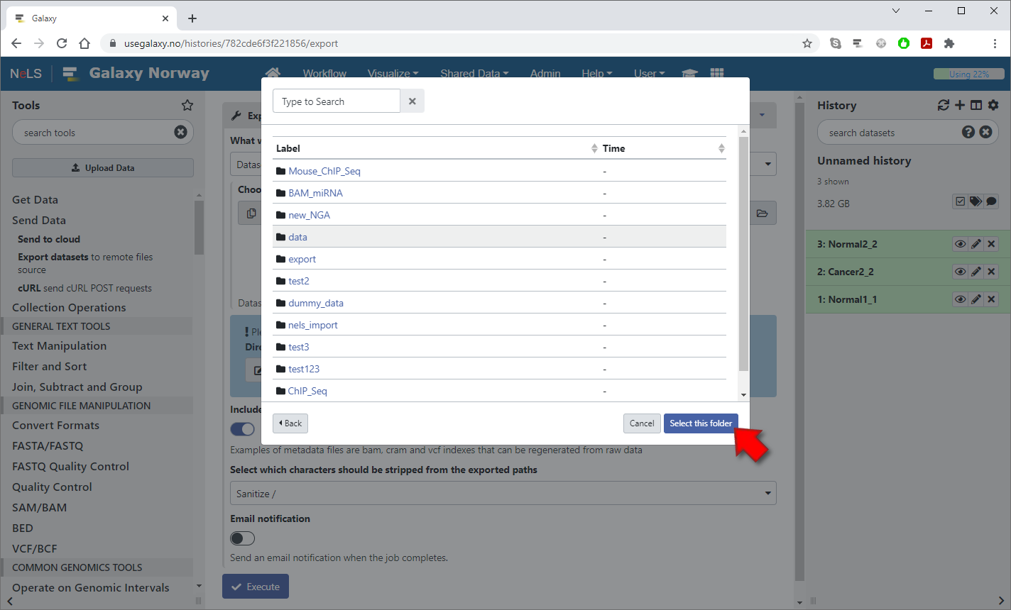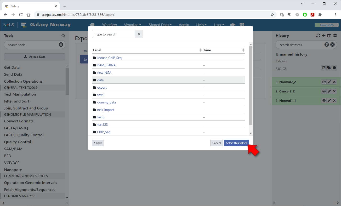 Select "NeLS Storage" or "NeLS Storage Projects" to import a history from either your Personal folder or your Projects folder