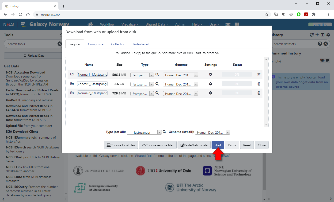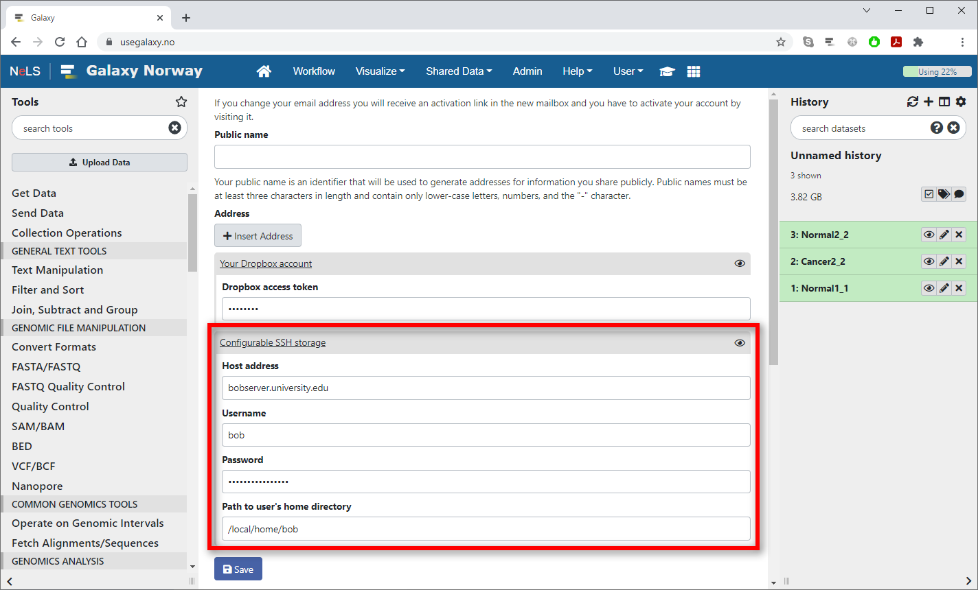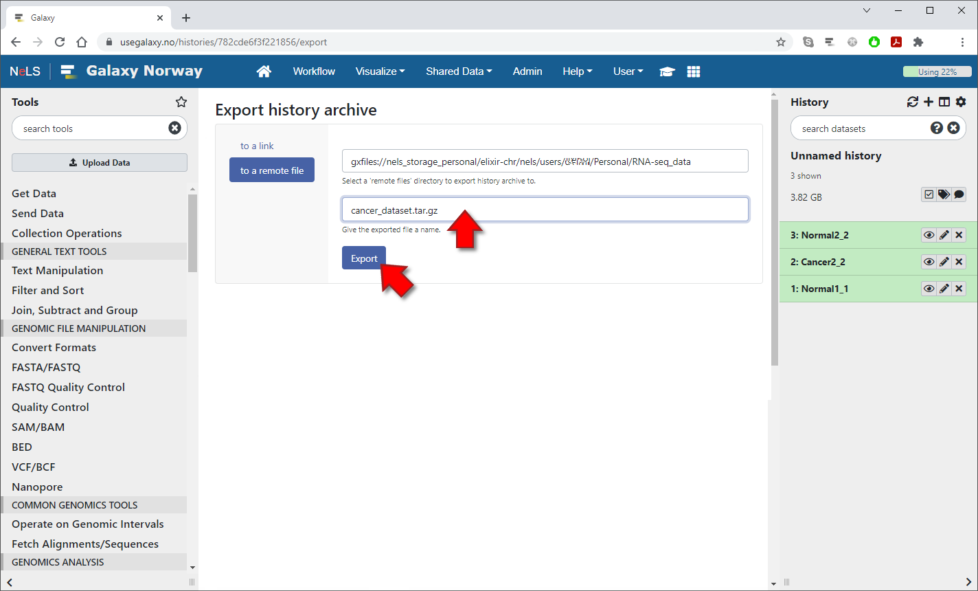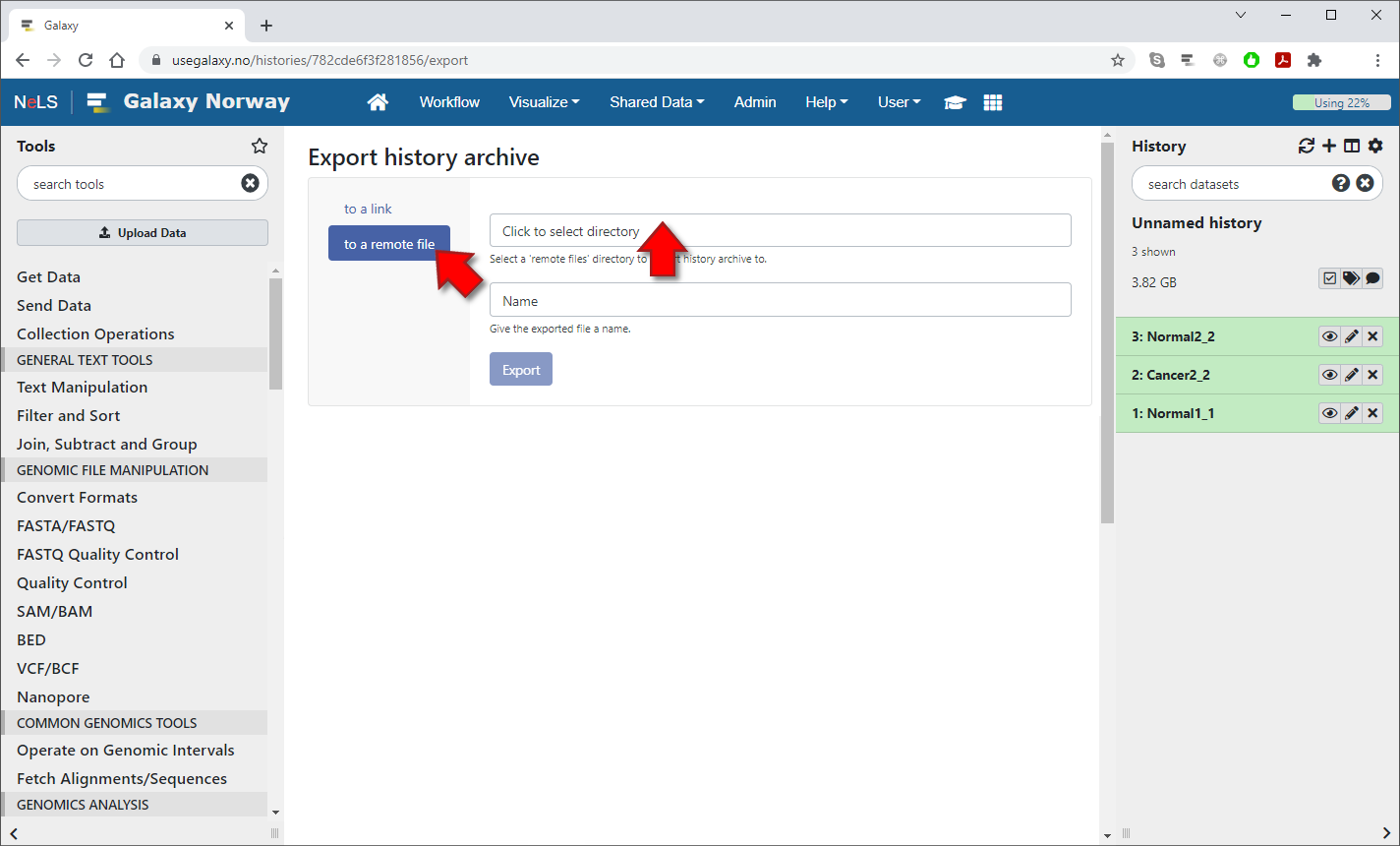 Select "NeLS Storage" or "NeLS Storage Projects" to import a history from either your Personal folder or your Projects folder