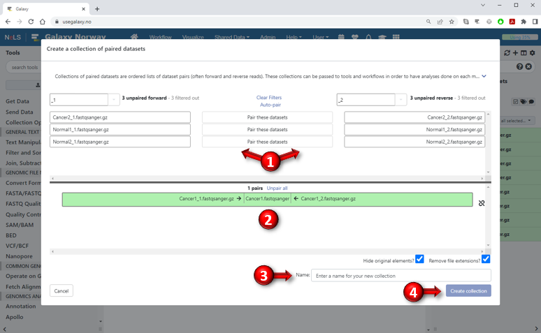 - Finally, press the "Create collection" button to create the new pair collection and add it to your history.