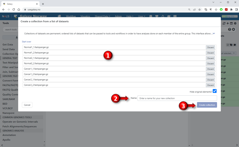 Galaxy currently supports two different types of basic collections: pairs and lists.